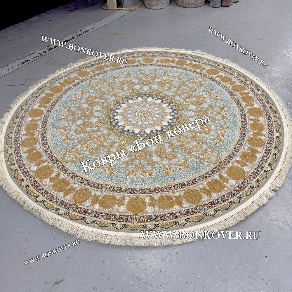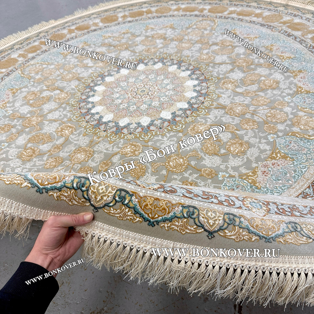 Иранский Круглый Ковер Для Гостиной Арт 30238 станет гармоничным дополнением интерьера, оформленного в современном или классическом стиле. Мягкое, но прочное, ковровое изделие обеспечивает тепло- и шумоизоляцию, отличается длительным сроком эксплуатации, пожаробезопасностью, экологичностью и высокой износостойкостью, является отличной преградой от повышенной влажности в помещении и утеплителем для холодного пола. Благодаря качеству материалов, ковер не деформируется, сохраняет первоначальный вид под тяжестью предметов мебели. За его поверхностью легко ухаживать.