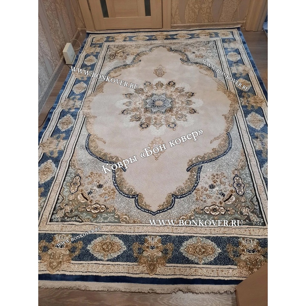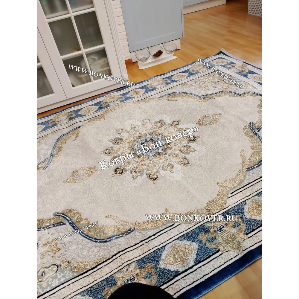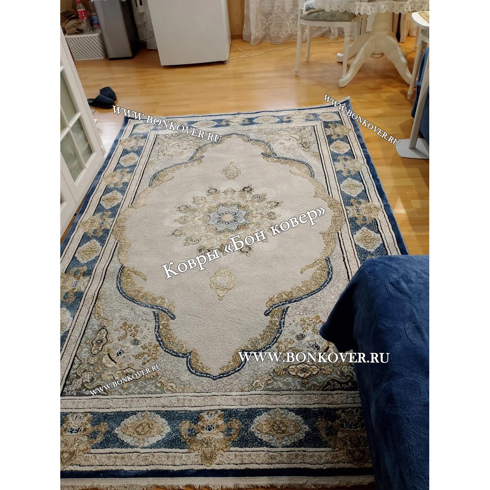 04.02.2024 Читать полный отзывДолго искали смотрели на разных сайтах , в итоге ваш ковер приглянулся больше всего . Доставили в рулоне на следующий день , оплатили при получении . Идеальный вариант , цвет темно синий с переливом - рисунок очень выйгрышно смотрится !