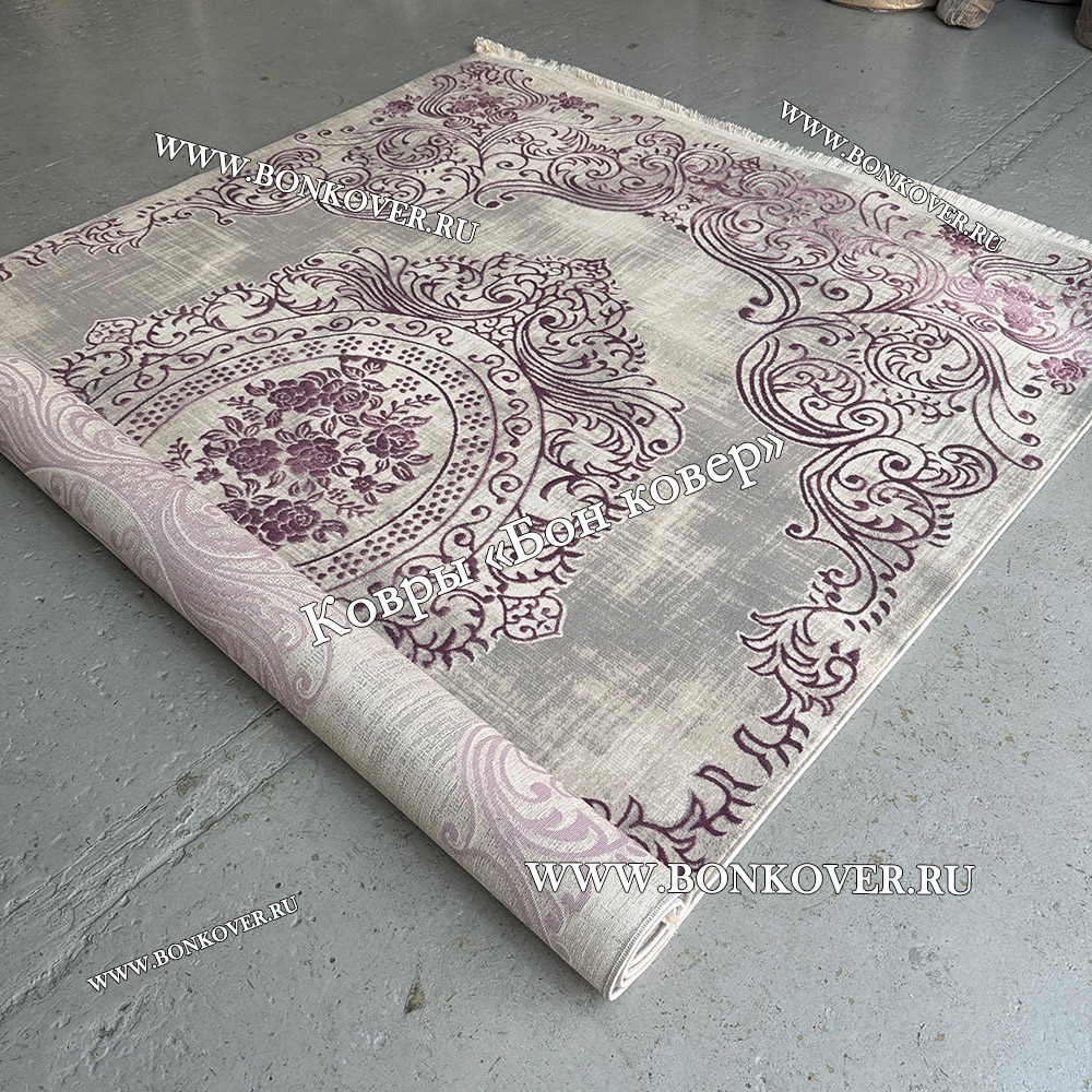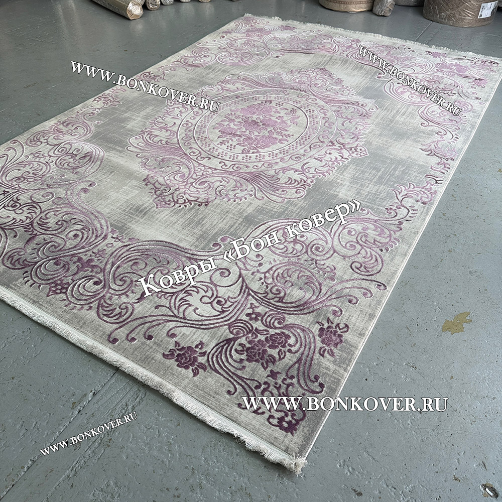 Ковер Турция Для Гостиной Дизайн 80 Сиреневый станет привлекательным дополнением интерьера, оформленного в современном или классическом стиле. Мягкое, но прочное, ковровое изделие обеспечивает тепло- и шумоизоляцию, отличается длительным сроком эксплуатации, пожаробезопасностью, экологичностью и высокой износостойкостью, является отличной преградой от повышенной влажности в помещении и утеплителем для холодного пола. Благодаря качеству материалов, ковер не деформируется, сохраняет первоначальный вид под тяжестью предметов мебели. За его поверхностью легко ухаживать.