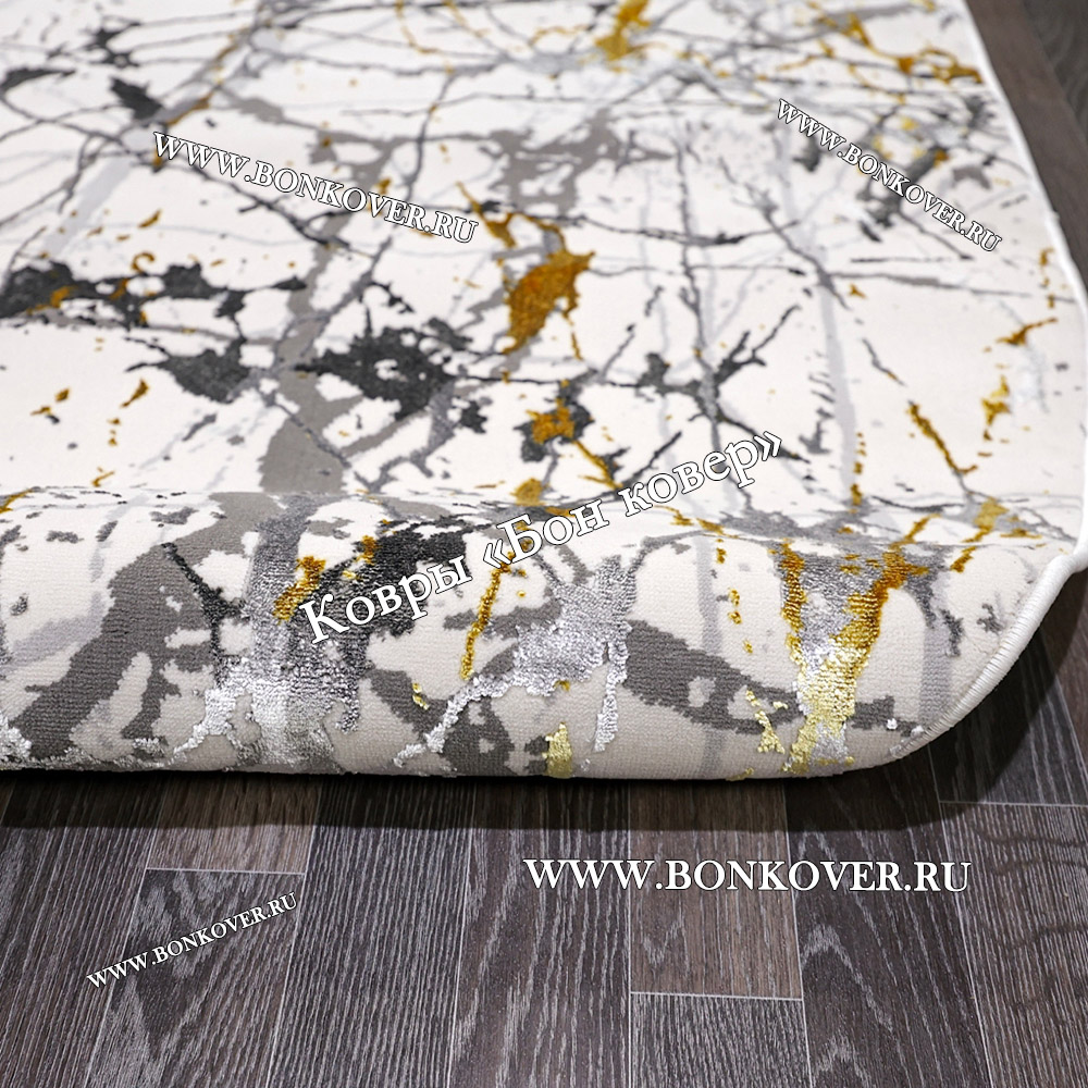 Турецкий Ковер Дизайн 28177 Белый с Золотистым Прямоугольный станет идеальным дополнением интерьера, оформленного в современном или классическом стиле. Мягкое, но прочное, ковровое покрытие обеспечивает тепло- и шумоизоляцию, отличается длительным сроком эксплуатации, надежностью, экологичностью и высокой износостойкостью, является отличной гарантией от повышенной влажности в комнате и утеплителем для холодного пола. Благодаря качеству материалов, ковер не деформируется, сохраняет форму под тяжестью предметов мебели. За его поверхностью легко ухаживать.