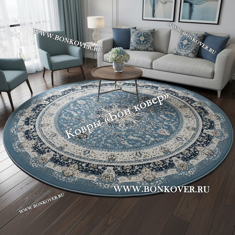 Турецкий Ковер Для гостиной New дизайн 87 Круг станет гармоничным дополнением интерьера, оформленного в современном или классическом стиле. Мягкое, но прочное, ковровое покрытие обеспечивает тепло- и шумоизоляцию, отличается длительным периодом эксплуатации, надежностью, экологичностью и высокой износостойкостью, является отличной гарантией от повышенной влажности в помещении и утеплителем для холодного пола. Благодаря качеству материалов, ковер не деформируется, сохраняет первоначальный вид под тяжестью предметов мебели. За его поверхностью легко ухаживать.